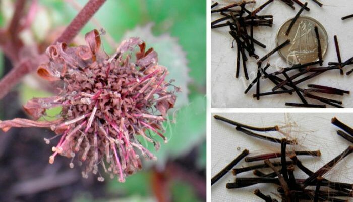 Для того чтобы собрать семена после того, как цветение закончится, нужно выбрать несколько соцветий и привязать на них мешочек из марли, для того чтобы не допустить самосева. Оставшиеся цветоносы нужно удалить. Это способствует стимуляции роста листовых пластин, а также вы сможете предотвратить нежелательный самосев. В осеннее время листочки растения окрашиваются в другой эффектный цвет, и они украшают сад до второй половины октября. После того как соцветия созреют, их нужно осторожно срезать, и уже в помещении вытряхнуть семена, которые следует провеять, чтобы очистить от мусора. В том случае, если вы желаете произвести высев в осеннее время, то семена следует высыпать на поверхность бумажного листка и дождаться подходящего для посева дня. Прежде чем поместить семена в пакетик из бумаги на хранение, их необходимо досушить.