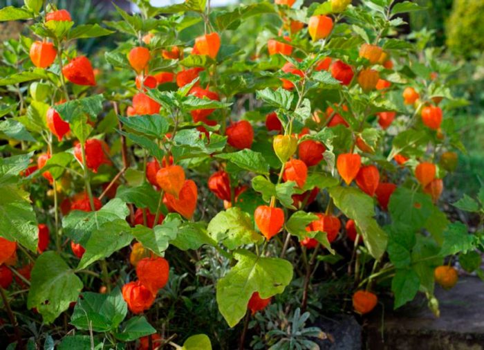 Физалис является травянистым однолетником либо многолетником. Коленчатые побеги могут быть ветвистыми, угловато-изогнутыми либо прямостоячими. Они полностью голые либо обладают небольшим опушением в верхней части. Высота стеблей варьируется от 0,2 до 1,2 м. Постепенно побеги у основания деревенеют. Листовые пластины супротивнорасположены, при этом внизу побега они попарно сближены либо очереднорасположены. Одиночные пазушные цветки вырастают по всей длине побега. Вздутые чашечки колокольчатой формы окрашены в насыщенный цвет, внутри находятся двугнездые шаровидные плоды красного либо оранжевого окраса — это душистые ягоды физалиса. Это растение является декоративным, несмотря на то, что у большого количество его видов ягоды обладают высокими вкусовыми качествами, и их можно есть. Физалис многолетник именуют китайским фонариком, такое растение превосходно смотрится в зимнем букете.